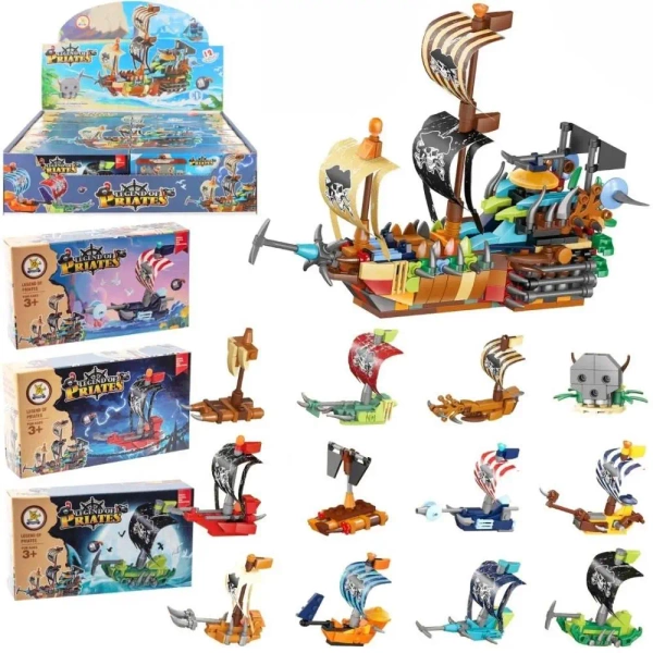 Zestaw Klocków LEGEND OF PIRATES - Kolekcja Małych Okrętów Z możliwością Budowy Wielkiego Statku!