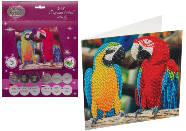 Zestaw Craft Buddy Crystal Art Papugi Przyjaciele to zachwycająca kompozycja pełna tropikalnych kolorów i blasku. Przedstawia parę barwnych papug siedzących obok siebie symbol przyjaźni, harmonii i egzotycznego piękna natury. Tworząc ten projekt, stopniowo ozdabiasz ilustrację błyszczącymi kryształkami, które nadają obrazowi głębi, połysku i realistycznego efektu 3D.
