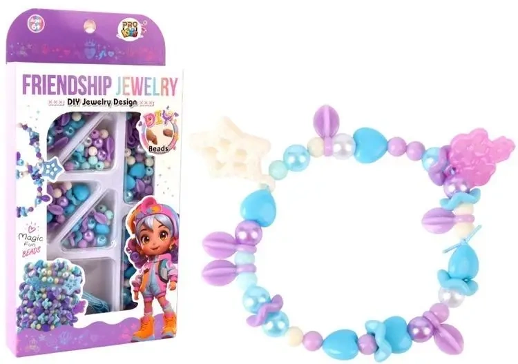 Zestaw Akademia Mody Bransoletki Przyjaźni to kreatywna zabawka, która pozwoli Ci tworzyć wyjątkowe, kolorowe ozdoby symbolizujące więź i radość wspólnego tworzenia. W pudełku znajdziesz zestaw błyszczących koralików w pastelowych odcieniach fioletu, błękitu i różu, a także elastyczne sznurki i zawieszki w kształcie gwiazdek i kwiatów. Dzięki nim możesz zaprojektować własne bransoletki i naszyjniki, a następnie wymienić się nimi z przyjaciółkami.