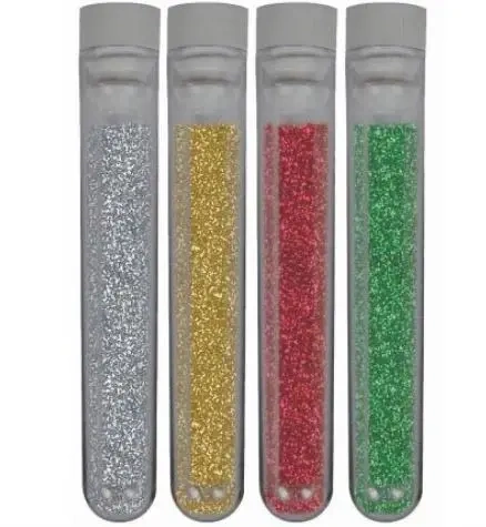Drobny brokat w fiolkach. Każda fiolka zawiera 6,5 g. brokatu.