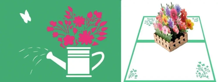 Po otwarciu karnetu oczom ukazuje się efektowny, trójwymiarowy kwietnik. Precyzyjne cięcia papieru tworzą zachwycający efekt POP-UP, który dodaje kompozycji wyjątkowej głębi i elegancji.
