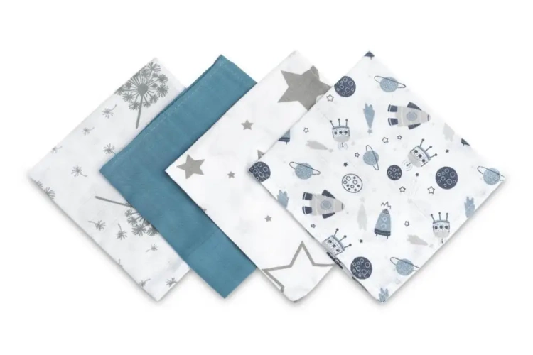 Pieluszka wykonana jest z delikatnej bawełny niepodrażniającej skóry dziecka i niepowodującej alergii. Pieluszki w tym rozmiarze świetnie sprawdzają się jako chusteczki, myjki, apaszki czy osłonki przed słońcem. Opakowanie zawiera 4 sztuki