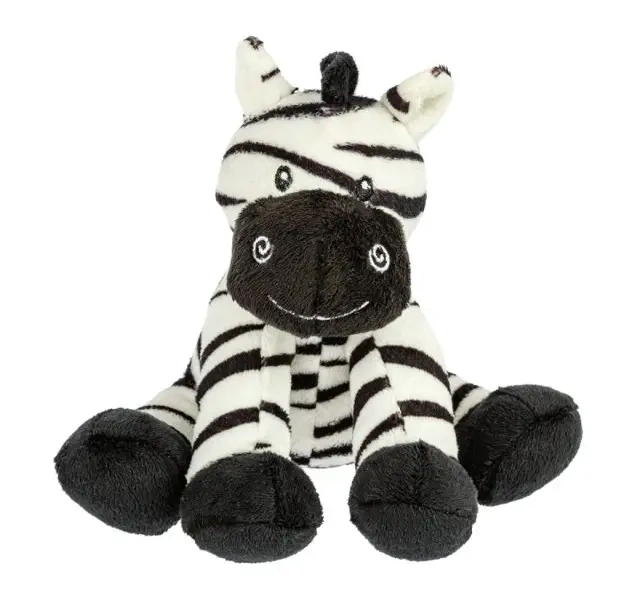 Miękki materiał w małym rozmiarze w kolorze czarno-białym, z haftowanymi akcentami i wewnętrzną grzechotką