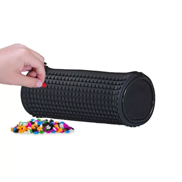 - Na przedniej stronie piórnika znajduje się kreatywny silikonowy panel, na którym można układać przeróżne wzory.