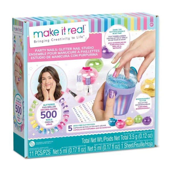 Zawarty w zestawie brokat jest biodegradowalny, a saszetki z brokatem umożliwiają łatwą stylizację bez bałaganu. Zestaw zawiera też opalizujące naklejki na paznokcie, aby zapewnić im dodatkowy blask i jeszcze bardziej niezwykłe efekty. Ten innowacyjny produkt z pewnością zachwyci nastolatki szybkimi i wspaniałymi rezultatami! To idealny prezent dla kreatywnych wielbicielek stylizacji paznokci.