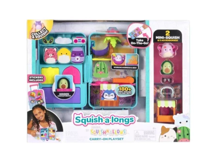 Czas się spakować i zabrać swoje ulubione Squish-a-longs na wakacje! Squish-a-longs to Twoje ukochane Squishmallows w zupełnie nowym rozmiarze 2,5 cm! Maskotki Mini-Squish idealnie nadają się do kolekcjonowania, zmieniają się w niezwykłe ozdoby, które możesz nosić i są idealne do zabrania ze sobą. W tym zestawie znajdziesz walizkę, która przekształca się w niesamowite miejsce do letniego odpoczynku, z trzema poziomami zabawy, takimi jak pokój do błogiego relaksu, wygodna sypialnia i kawiarnia ze smoothie! Półki w walizce można ponownie skonfigurować, aby dostosować je do własnych potrzeb, a ponadto znajdują się w niej również specjalne, tajne schowki dla Austina i Cailey. Weź hamak i zawieś go na palmie, którą znajdziesz na lewej górnej półce, aby stworzyć niesamowitą atmosferę wakacyjnego relaksu! Maskotki Mini-Squish mogą pobujać się w hamaku, zamówić smoothie, użyć słuchawek lub założyć okulary przeciwsłoneczne! Spersonalizuj walizkę, korzystając z arkusza z naklejkami i dołącz do zabawy z maskotkami Mini-Squish (których jest ponad 300!), dostępnymi w zestawach, w wielopakach i jako pojedyncze figurki do kolekcjonowania. Możliwości zabawy są nieograniczone! Poczuj wakacyjne wibracje!