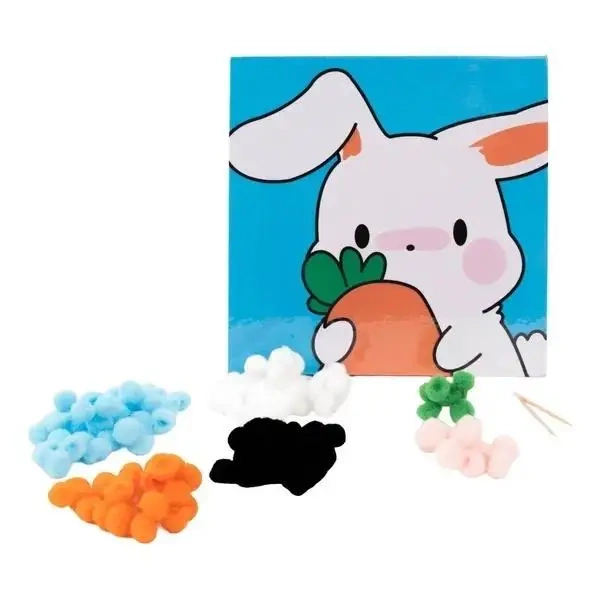 Kreatywny zestaw do tworzenia pięknych obrazków 3D, w zestawie: samoprzylepny szablon 20 x 20 cm, pompony, wykałaczka do rozciągania pomponów