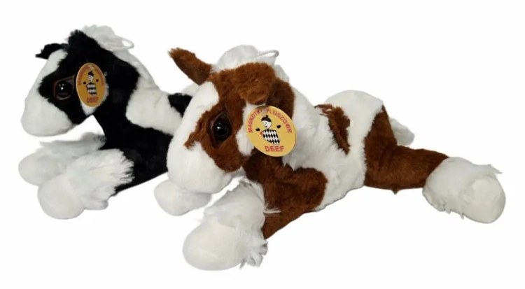 Konik leżący wykonany z miękkiego pluszu w dwóch kolorach do wyboru. Produkt występuje w kilku wersjach kolorystycznych, wybierany losowo. Cena dotyczy jednej sztuki.