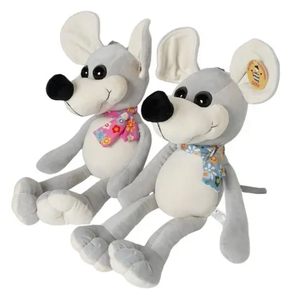 Urocza, szara myszka z kolorowym szaliczkiem i wielkimi uszkami, idealnie nadaje się do zabawy i przytulania. Jest niezwykle przyjemna w dotyku i wypełniona miękkim pluszem. Do główki maskotki przyszyty został dyskretny sznureczek, umożliwiający powieszenie myszki w dowolnym miejscu. Zabawka będzie pięknie prezentować się w pokoju. To idealny pomysł na prezent! Produkt występuje w kilku wersjach kolorystycznych, wybierany losowo. Cena dotyczy jednej sztuki.