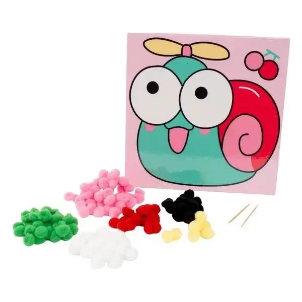 Kreatywny zestaw do tworzenia pięknych obrazków 3D, w zestawie: samoprzylepny szablon 20 x 20 cm, pompony, wykałaczka do rozciągania pomponów