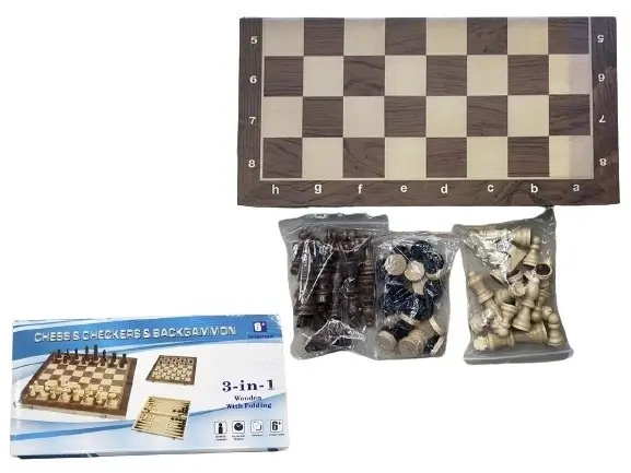 Szachy drewniane 2 w 1 rozmiar złożonej szachownicy 39x19,5x4 cm indywidualne pakowanie -color box użyty materiał - sosna kalifornijska