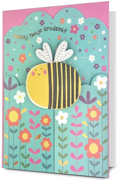 Kartka zawiera życzenia i kolorowy środek.