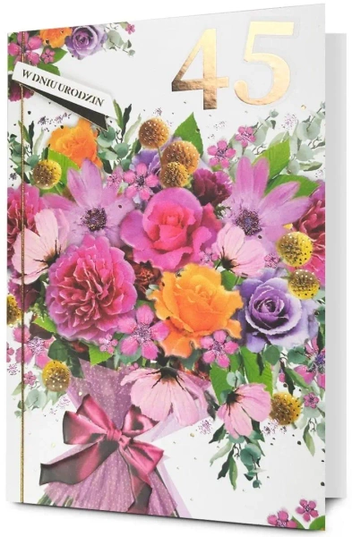 Kartka jest bogato i różnorodnie zdobiona (zależnie od wzoru: metaliczna folia, lakier perłowy, przyklejone elementy 3D - wypukłe wstawki papierowe, tłoczenia).