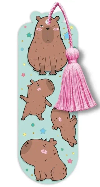 Złocona zakładka wykonana z grubego kartonu ozdobiona kolorowym chwostem.