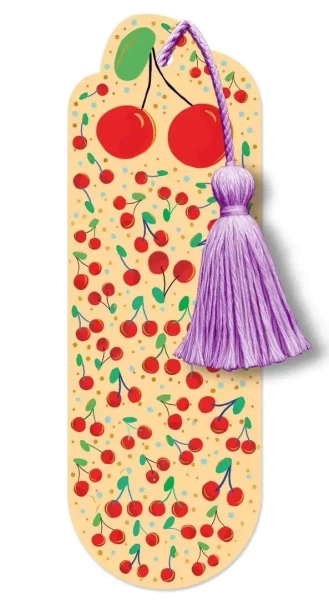 Złocona zakładka wykonana z grubego kartonu ozdobiona kolorowym chwostem.