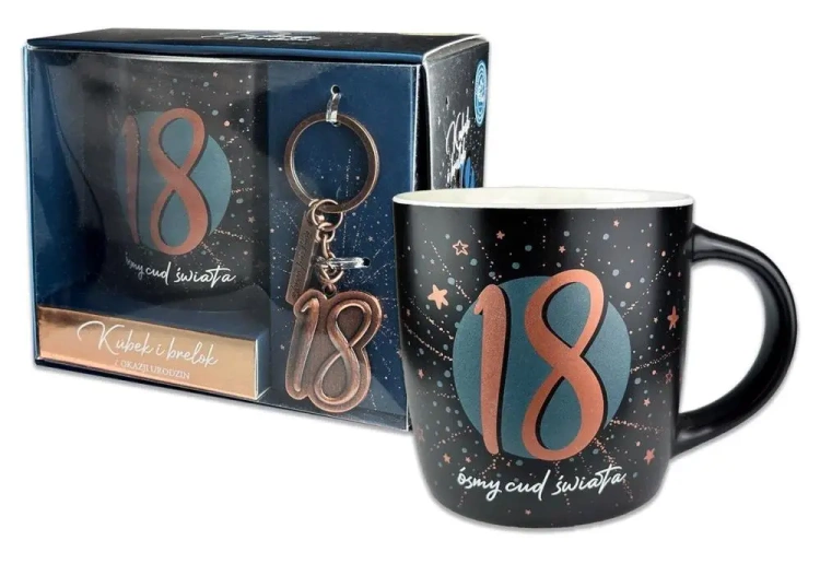 Kubek Denim z metalowym brelokiem - 18 urodziny - Pan Dragon