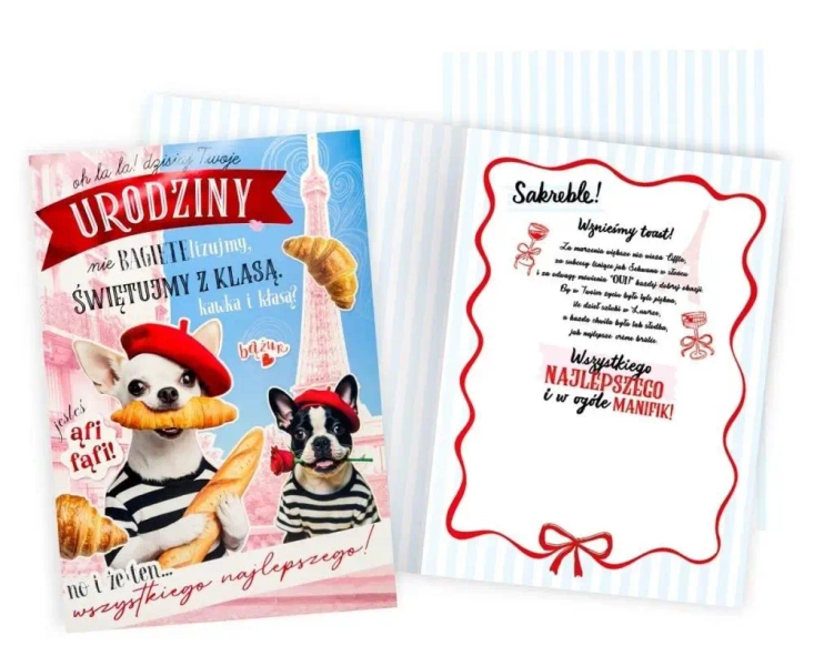 Karnety Gigant to ogromne karnety w formacie 34 x 48 cm, stworzone z myślą o wielkich życzeniach. Zdobione srebrną lub złotą folią i pokryte elegancką folią błyszczącą lub matową. Każdy karnet zawiera w środku starannie dobrane życzenia oraz dopasowaną kopertę. Cechy szczególne: wymiary: 34 x 48 cm (po złożeniu) koperta: w zestawie, kolorowa, 50x36cm zdobienia: różnorodne, folia złota/srebrna, folia matowa/błyszcząca okazja: Osiemnastka