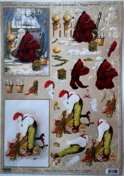 Arkusz do techniki 3 D z wysztancowanymi elementami . Format A-4, nie wymagające wycinania. Oznaczenia cyfrowe pomagają w perfekcyjnym nakładaniu elementów na siebie celem tworzenia wypukłych kompozycji.