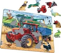 Zielony kombajn zebrał zboże z pola. Wewnątrz kombajnu ziarno jest wybijane i wytrząsane z kłosów. Następnie jest podawane do zbiornika, kłosy oraz słoma są wydmuchiwane z tyłu. Po zbiorze kombajn na postoju transportuje zboże na przyczepę ciągnika, która zabierze je do spichlerzy, przed czym jednak musi zostać wysuszone. Dwa króliki oraz bażant muszą uciec sprzed maszyn, zanim ponownie ruszą. Niektóre z 39 elementów mają oryginalne kształty wykrojnika (króliki, psy, traktor i bażant). Jest to łamigłówka dla wszystkich, którzy kochają traktory i duże maszyny.