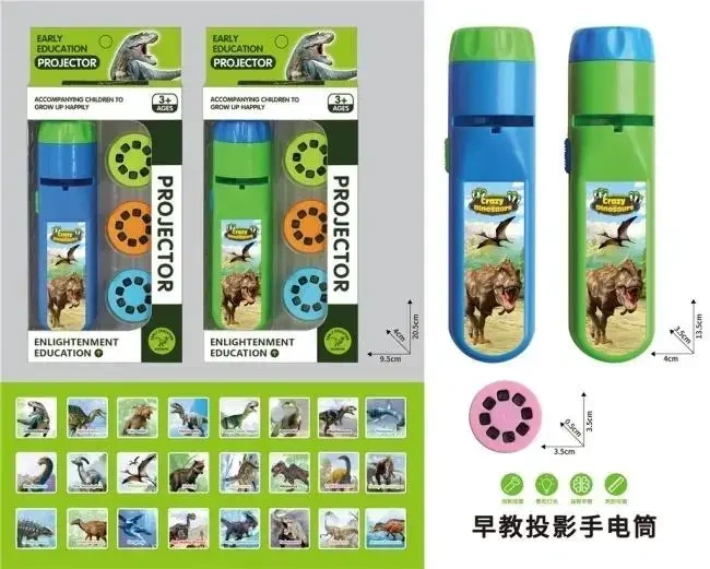 Odkryj fascynujący świat dinozaurów z edukacyjnym projektorem dla dzieci! Ten poręczny projektor w kształcie latarki to idealna zabawka do wczesnej nauki i rozrywki dla dzieci w wieku 3 lat i starszych. Dzięki niemu dzieci mogą poznać różnorodne gatunki prehistorycznych zwierząt, od tyranozaura po stegozaura. Projektor jest dostępny w dwóch żywych kolorach, niebieskim i zielonym, co z pewnością przyciągnie uwagę każdego małego odkrywcy. Prosta obsługa sprawia, że maluchy mogą samodzielnie zmieniać slajdy i wyświetlać kolorowe obrazy na ścianie lub suficie. To świetny sposób na wspieranie rozwoju poznawczego, poszerzanie słownictwa i rozbudzanie ciekawości świata.