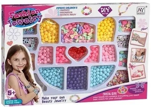 Odkryj fantastyczny Zestaw Koralików Fashion Jewelry, który inspiruje dzieci do tworzenia własnej, niepowtarzalnej biżuterii. Ten bogato wyposażony zestaw DIY zawiera szeroką gamę koralików Crystal Gems w żywych kolorach i różnorodnych kształtach, takich jak żółte, różowe, niebieskie i fioletowe koraliki okrągłe, urocze pastelowe koraliki w kształcie kokardek oraz czerwone serduszko. Dodatkowo, w zestawie znajdują się koraliki z literkami, pozwalające na tworzenie spersonalizowanych napisów, imion lub haseł na bransoletkach i naszyjnikach. Tworzenie biżuterii to doskonałe ćwiczenie dla małej motoryki, wspiera poprawę kreatywności i rozwija zdolności estetyczne. Zestaw jest zapakowany w praktyczne opakowanie z przegródkami, które ułatwia przechowywanie i organizację koralików, utrzymując porządek podczas zabawy. Zestaw rekomendowany jest dla dzieci od lat pięciu i stanowi świetny prezent dla każdej małej miłośniczki mody i rękodzieła, która chce samodzielnie projektować i nosić biżuterię.