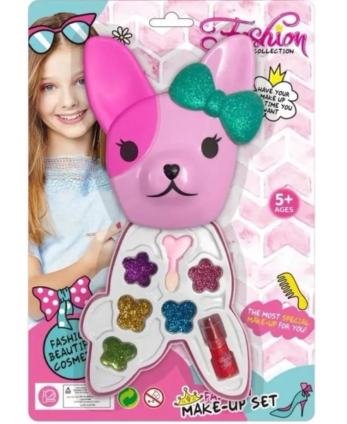 Rozbudź kreatywność swojej małej artystki z zestawem Fashion Make-Up Set! To fantastyczny zestaw kosmetyków dla dzieci, zapakowany w przyciągające wzrok opakowanie w kształcie uroczego, różowego pieska z kokardą. Piesek jest nie tylko pojemnikiem na kosmetyki, ale także wesołym elementem dekoracyjnym.