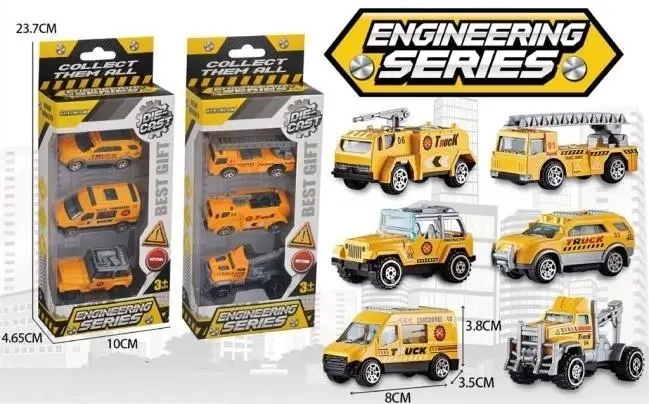 Oto fantastyczny zestaw trzech szczegółowo wykonanych samochodów z serii Engineering Series. Te metalowe autka typu Die-Cast są stworzone z myślą o małych miłośnikach pojazdów budowlanych i specjalistycznych. Każde opakowanie zawiera trzy unikalne modele w charakterystycznym pomarańczowo-żółtym kolorze, co pozwala na różnorodną i kreatywną zabawę. Ze względu na małe elementy zestaw jest przeznaczony dla dzieci od 3 lat.