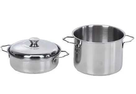 Ten uniwersalny zestaw do gotowania to niezbędny element wyposażenia każdej kuchni. Składa się z dwóch naczyń wykonanych z wysokiej jakości stali nierdzewnej, co gwarantuje długotrwałe użytkowanie i odporność na korozję. Pierwszy element to szeroki i płytki garnek wyposażony w dopasowaną, stalową pokrywkę z uchwytem. Jest on idealny do duszenia mięs, przygotowywania gulaszy lub serwowania dań na stół. Drugie naczynie to wysoki i pojemny garnek bez pokrywki, doskonały do gotowania makaronu, zup, bulionów czy sterylizacji słoików. Oba garnki mają solidnie zamocowane uchwyty, które ułatwiają przenoszenie. Stal nierdzewna sprawia, że są łatwe do utrzymania w czystości i nadają się do mycia w zmywarce. Komplet sprawdzi się zarówno w domowej kuchni, jak i w profesjonalnej gastronomii.