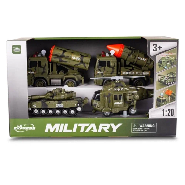Zestaw wojskowy XXL to idealna propozycja dla każdego małego fana armii, pojazdów militarnych i dynamicznych akcji specjalnych. W komplecie znajdują się aż 4 realistyczne sprzęty wojskowe, które pozwalają tworzyć własne scenariusze wojskowych misji. Dzięki efektom świetlnym i dźwiękowym, napędowi frykcyjnemu i ruchomym elementom, zabawa staje się wyjątkowo realistyczna i angażująca.