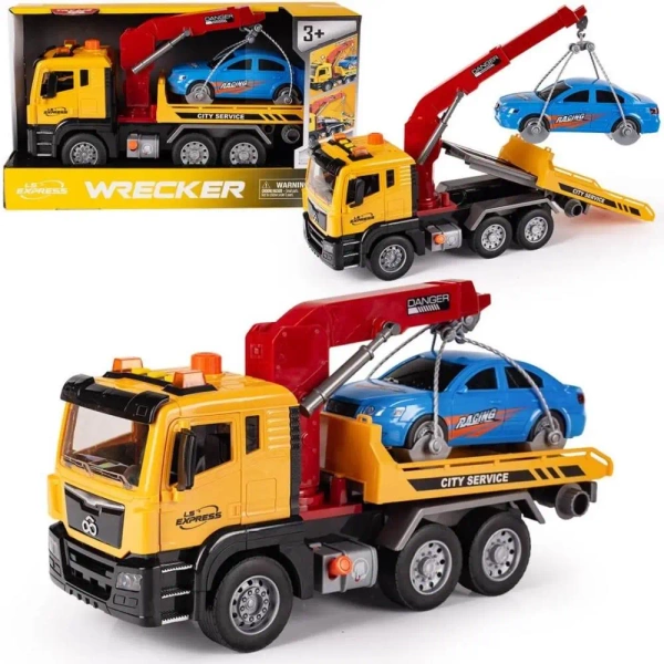 Poznaj niezwykle realistyczny zestaw Auto Pomoc Drogowa Holownik - zabawkę, która przenosi dzieci w świat prawdziwej motoryzacji i ratunkowych akcji drogowych! W zestawie znajduje się duża laweta z modułem świetlno-dźwiękowym oraz małe autko sportowe do holowania. Ten wyjątkowy pojazd został wykonany z wysokiej jakości tworzywa odpornego na promieniowanie UV i warunki atmosferyczne, co gwarantuje trwałość i intensywne, nieblaknące kolory przez długi czas. Zabawka nie tylko zachwyca wyglądem, ale też funkcjami - otwierane drzwi, ruchoma rampa, gumowe opony i efekty świetlno-dźwiękowe sprawiają, że każda zabawa zamienia się w realistyczną przygodę