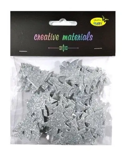 Choinki z pianki brokatowej srebrne ok 50szt - Galeria Hobby