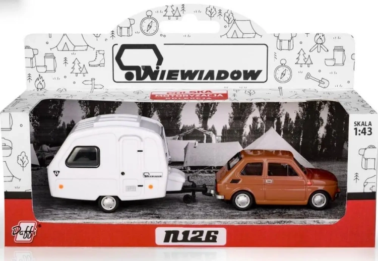 Fiat 126p + przyczepa Niewiadów Kemping brązowy - Daffi