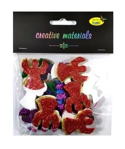 Rozpocznij kreatywną przygodę z zestawem brokatowych aniołków stworzonych z pianki. Każdy aniołek ma rozmiar około 40 mm i w zestawie otrzymasz ich w ilości około 50 sztuk. Zupełną nowością jest eleganckie opakowanie z eurozawieszką, które doskonale nadaje się do przechowywania.
