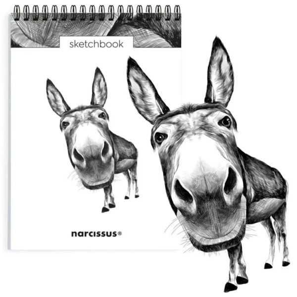 NARCISSUS pionowy szkicownik artystyczny na spirali A5 Osioł, 60 kartek z perforacją