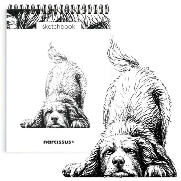 NARCISSUS pionowy szkicownik artystyczny na spirali A5 Pies Berneńczyk, 60 kartek z perforacją