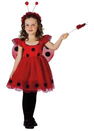 Strój Biedronka: sukienka, skrzydła, różdżka, opaska na głowę,