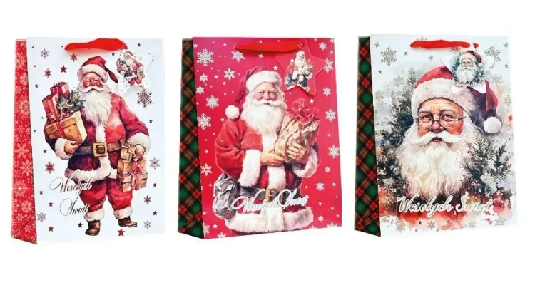 Torba prezentowa świąteczna TB-1 MIKOŁAJ, wymiar 18x24x8, 210g, pakiet mix 12szt wysyłany losowo