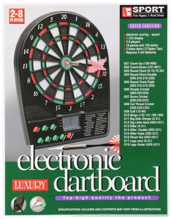 Zalety produktu rozwija kreatywność dziecka, poprawia koordynację ruchową, zabawa na świeżym powietrzu. Rzucamy do celu Kto zbierze więcej punktów - wygrywa Tarcza do Darta MEGA CREATIVE zapewni emocje oraz rywalizację na najwyższym poziomie Tarcza posiada elektroniczny wyświetlacz dzięki któremu można sprawdzać wynik gry. Tarczę należy postawić lub powiesić na ścianie. Do celu można rzucać na przemian lub seriami po 3 rzuty. Wygrywa ten kto uzbiera największą liczbę punktów. Zawartość zestawu tarcza, 3 x rzutki. Produkt wykonany z plastiku oraz tworzywa sztucznego. Wymiary/waga/baterie wymiary produktu dł. x szer. x gł. cm 20x26x3, wymiary opakowania dł. x wys. x gł. cm 31x37x4, waga produktu bez opakowania kg 0,44 kg, waga produktu w opakowaniu kg 0,53 kg, wymaga zasilania bateriami 3 x AALR06- nie załączono do zestawu. Zestaw pakowany w kartonik. W kartonie zbiorczym po 36 szt.