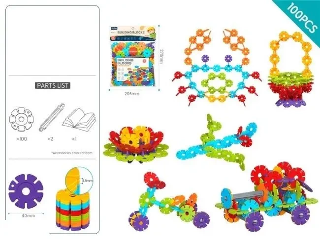 Przedstawiamy wszechstronny zestaw 100 klocków konstrukcyjnych, który zamieni czas zabawy w fascynującą lekcję kreatywności i inżynierii. Te unikalne klocki, zaprojektowane na wzór kół zębatych lub płatków kwiatów, charakteryzują się żywymi, różnorodnymi kolorami, które dodatkowo pobudzają zmysły. Łatwy system łączenia pozwala na tworzenie płaskich mozaik oraz skomplikowanych konstrukcji 3D. Dzieci mogą zbudować między innymi motocykl, samolot, ciężarówkę, czy abstrakcyjne formy widoczne na załączonym obrazku. Zabawa tymi klockami wspiera rozwój małej motoryki, koordynacji wzrokowo-ruchowej oraz umiejętności logicznego myślenia i planowania przestrzennego. W komplecie, oprócz stu klocków, znajdują się dwa specjalne, dłuższe elementy do łączenia, które poszerzają możliwości budowania oraz ilustrowana instrukcja z inspiracjami, która pomoże rozpocząć przygodę z konstruowaniem. To idealny prezent, który gwarantuje wiele godzin edukacyjnej i radosnej zabawy.