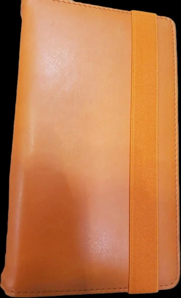z notesem i adresownikiem,