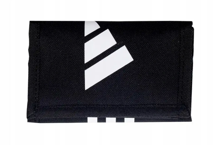 Sportowy portfel markowy Adidas w klasycznym czarnym kolorze to praktyczny i stylowy dodatek na co dzień. Zapinany na rzep, wyposażony w zewnętrzną kieszonkę na zamek błyskawiczny, pozwala na szybki dostęp do najpotrzebniejszych drobiazgów. Wykonany w 100% z poliestru z recyklingu, charakteryzuje się wyjątkową trwałością i odpornością na codzienne użytkowanie. Dzięki licznym wewnętrznym przegrodom i kieszeniom, w tym siateczkowej na monety, zapewnia doskonałą organizację gotówki, kart i dokumentów. Przednia kieszeń na suwak oferuje dodatkowe miejsce na drobiazgi, a kompaktowy, a zarazem pojemny kształt sprawia, że portfel jest idealny zarówno do codziennego użytku, jak i podróży.