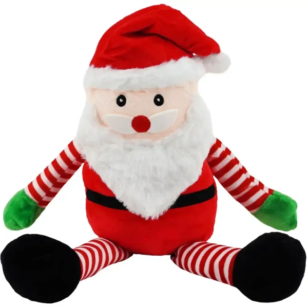 Pluszowy Mikołaj z długimi biało-czerwonymi kończynami - idealny element świątecznego wystroju.