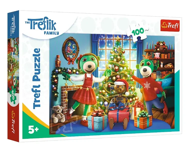 Zimowe Trefliki to puzzle, które składają się ze 100 elementów. Zostały zaprojektowane specjalnie z myślą o małych fanach Rodziny Treflików. Po ułożeniu puzzli powstanie obrazek o wymiarach 410x275mm.