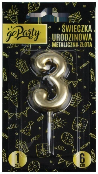 Świeczka urodzinowa 3 Metaliczna złota - GoParty