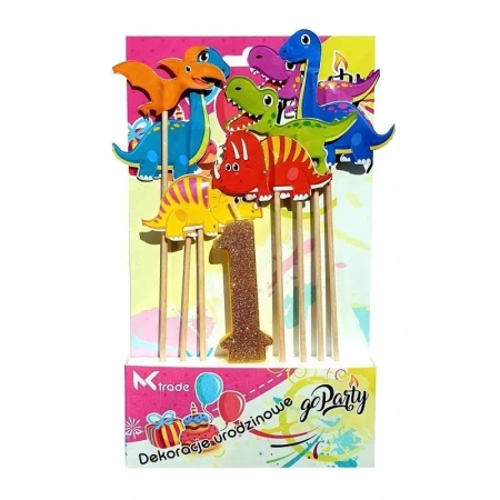 Dekoracja urodzinowa świeczka i dinozaury 8szt - GoParty
