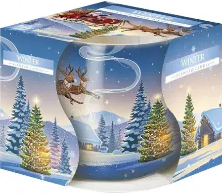 Świeca zapachowa w szkle z nadrukiem zimowego pejzażu to pięknie prezentująca się oraz pachnąca dekoracja do wszelkich zimowych aranżacji. Cudownie wygląda na stole świątecznym wsród gałązek świerka, lub zapalona po spacerze w płatkach śniegu wieczorową porą, przy kubku gorącej herbaty.
