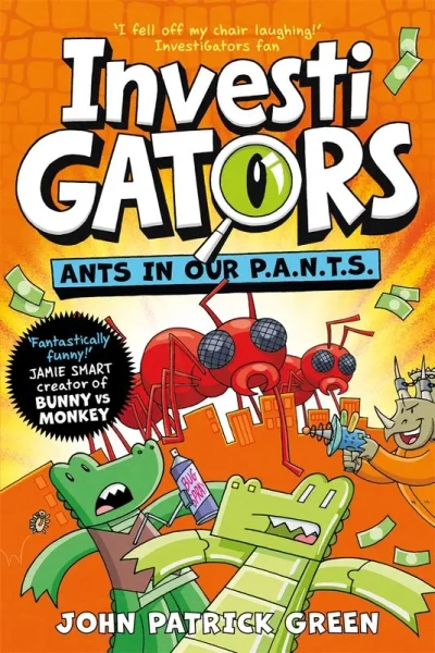 Laugh yourself silly with the InvestiGators! Crime-fighting alligators Mango and Brash have ants in their P.A.N.T.S in their fourth comic book adventure. 'Fantastically funny' – Jamie Smart, creator of Bunny vs Monkey.Brash is out of action after being swallowed by a giant waffle so Mango teams up with his robot replacement Robo–Brash to fight crime! With the evil Crackerdile off the scene that will be easy right?WRONG!Soon the city is overrun by giant ants, an evil astronaut and a triceratops on a rampage. Will Brash recover in time to help exterminate the gi–ANT problem?InvestiGators: Ants in Our P.A.N.T.S is the fourth full colour comic book adventure by John Patrick Green, perfect for fans of Bunny vs Monkey.Collect all the books in the hilarious series of graphic novels for kids: InvestiGators, Take the Plunge, Off the Hook and tons more. Don't miss Agents of S.U.I.T., the spin off series featuring Mango and Brash's colourful coworkers!