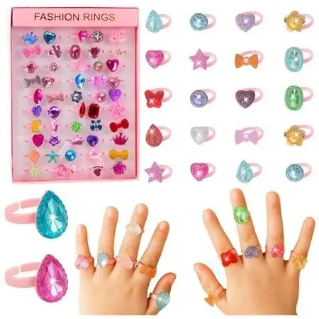 ZESTAW 50 BŁYSZCZĄCYCH PIERŚCIONKÓW DLA DZIECI