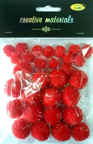 Pompony glitter czerwone 15x25mm 30szt - Galeria Hobby