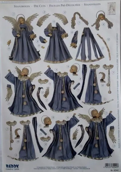 Arkusz do techniki 3 D z wysztancowanymi elementami . Format A-4, nie wymagające wycinania. Oznaczenia cyfrowe pomagają w perfekcyjnym nakładaniu elementów na siebie celem tworzenia wypukłych kompozycji.